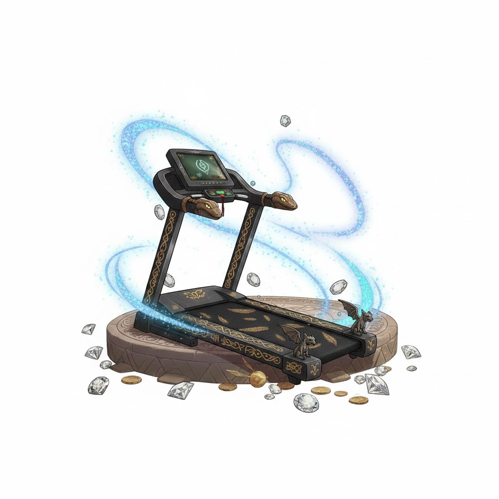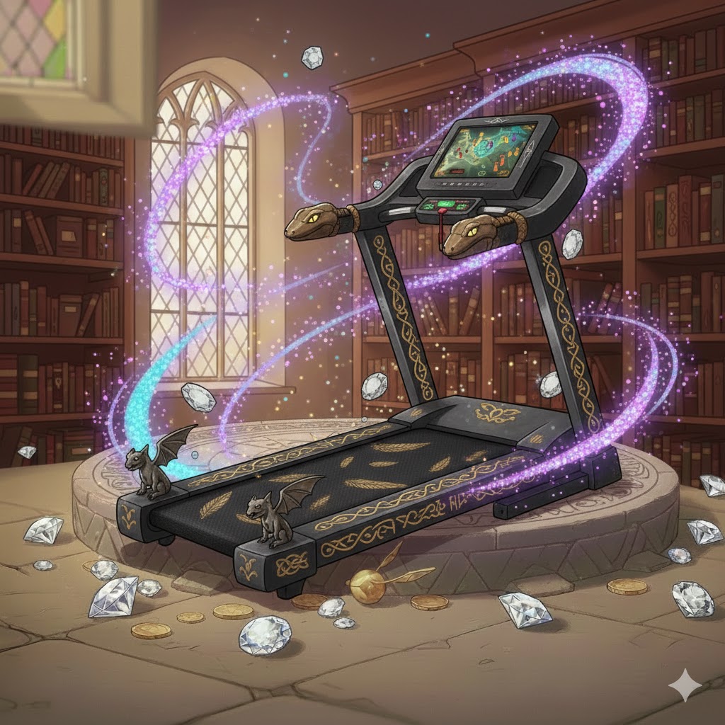 Šis bėgtakio treniruoklis buvo sukurtas po to, kai Hogvartse kilo ginčas: kas greitesnis – burtininko pelėda ar žmogus su tikrai geru treniruokliu. Atsakymas paaiškėjo labai greitai. Vos tik įjungus bėgtakį, juosta pradeda suktis taip sparčiai, kad net pačios Hogvartso pelėdos ima sukti ratus ore, nes nebesupranta, kas ką aplenkė. Haris kartą pabandė bėgti ant jo ir prisiekė, kad trumpam pamatė savo atspindį ateityje.